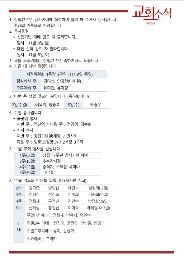 교회소식(11월 1주)