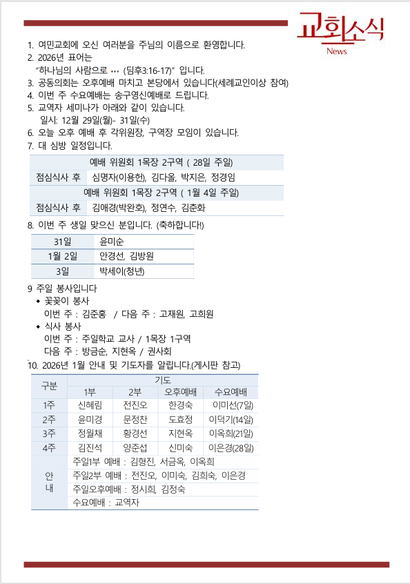 교회소식 (12월 4주)