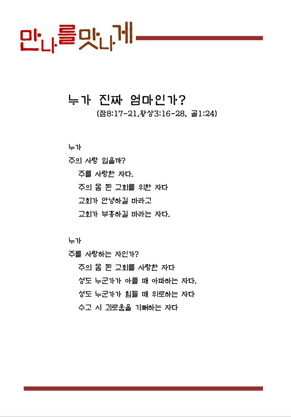 다음글 | 만나를 맛나게(8월 5주) | 윤미경 | 2025.09.02 | 0 | 29 |